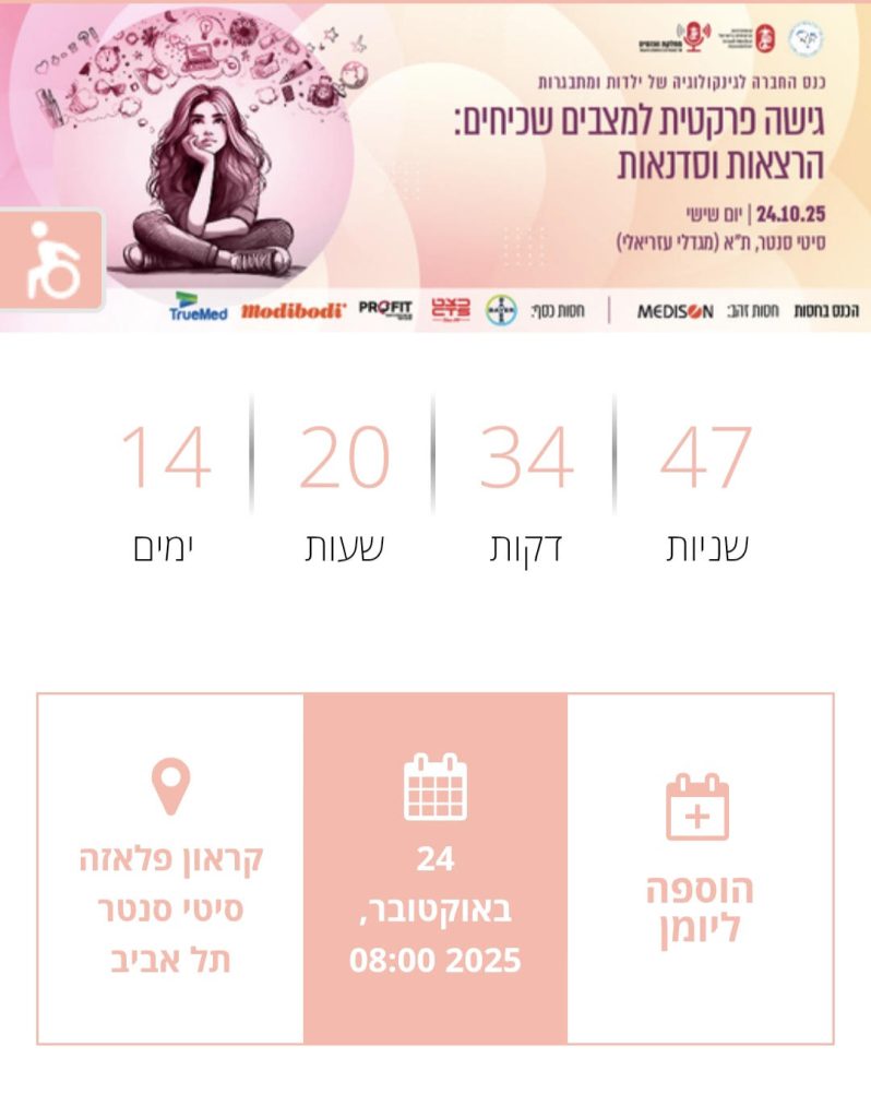ראשי » אירוע » גישה פרקטית למצבים שכיחים: הרצאות וסדנאות 24.10.25 גישה פרקטית למצבים שכיחים: הרצאות וסדנאות 24.10.25 תאריך/זמן 24/10/2025 / 8:15 - 12:45 מקום:סיטי סנטר תל אביב קטגוריות: כנסים בארץ לתכנית ומידע נוסף לחצו כאן השארת תגובה ביטול חייבים להתחבר כדי להגיב.