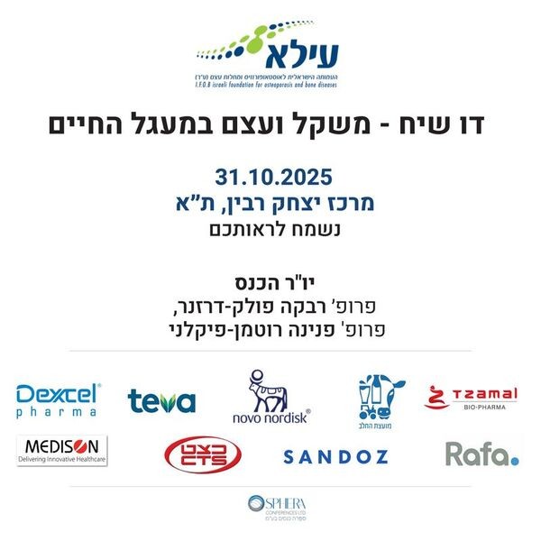 ראשי » אירוע » כנס בנושא: דו שיח משקל ועצם במעגל החיים כנס בנושא: דו שיח משקל ועצם במעגל החיים תאריך/זמן 31/10/2025 / 8:00 - 13:15 מקום:מרכז יצחק רבין קטגוריות: כנסים בארץ לתכנית הכנס וטופס רישום לחצו כאן השארת תגובה ביטול חייבים להתחבר כדי להגיב.