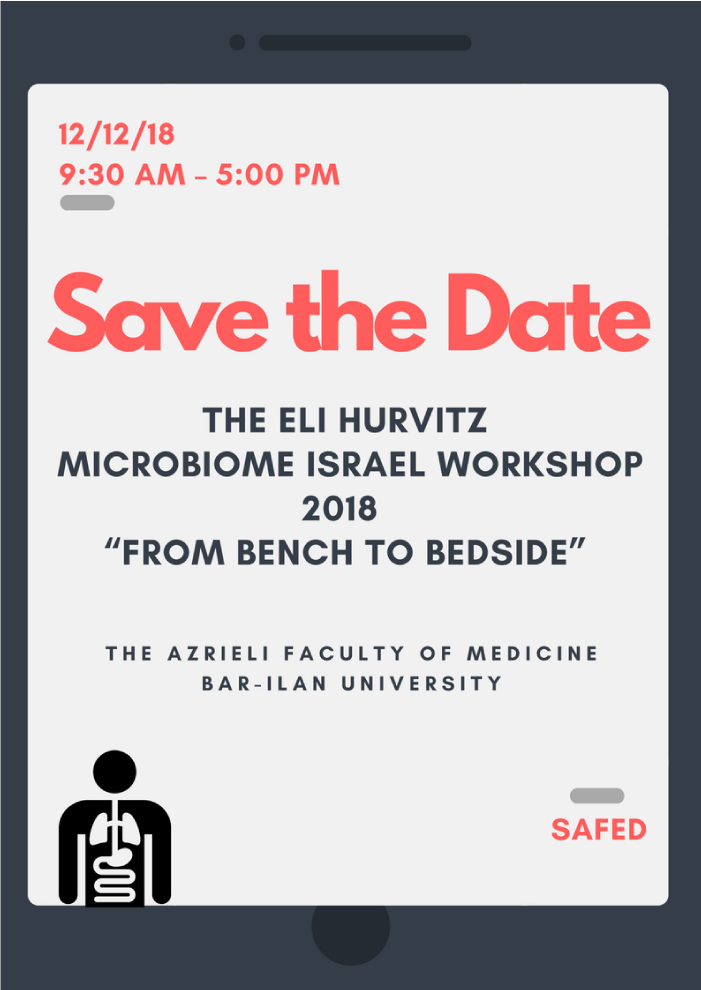 ראשי » אירוע » The Eli Hurvitz Microbiome Israel Workshop | from bench to beside | 12.12.18 The Eli Hurvitz Microbiome Israel Workshop | from bench to beside | 12.12.18 תאריך/זמן 12/12/2018 / 9:30 - 17:00 מקום:Azrieli Faculty of Medicine | Bar-Ilan University קטגוריות: כנסים בארץ לתכנית המפגש לחצו כאן השארת תגובה ביטול חייבים להתחבר כדי להגיב.