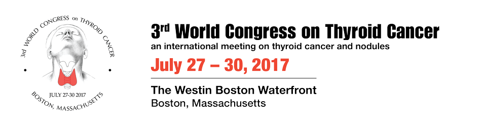 ראשי » תעוד מפגש » The 3rd World Congress on Thyroid Cancer | 27-30.7.2017 | Boston The 3rd World Congress on Thyroid Cancer | 27-30.7.2017 | Boston תאריך: 27/07/2017 - 30/07/2017 The 3rd World Congress on Thyroid Cancer will take place in the gorgeous city of Boston USA in July 2017. http://thyroidworldcongress.com/